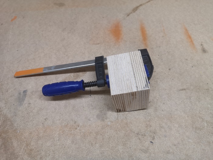 Po wyschnięciu kleju, jednej z węższych krawędzi nadałem pilnikiem półokrągły kształt.